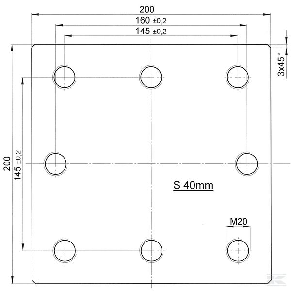Scharmuller metināmā plāksne, 145x145/160, ØM20