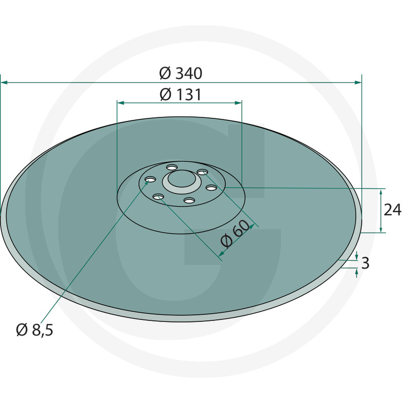 Sējdisks 340 x 3 mm, 6 caurumi