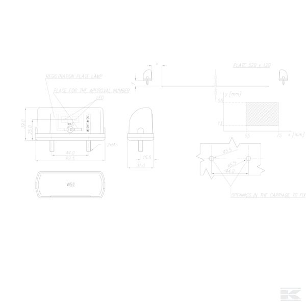 Attālums starp skrūvēm (mm):44