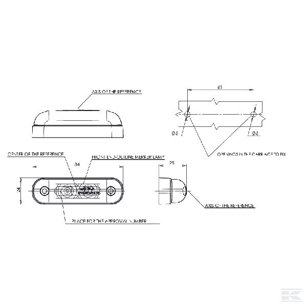 LED Gabarītlukturis, priekšējais, 282, W-61, 12-24 V, balts