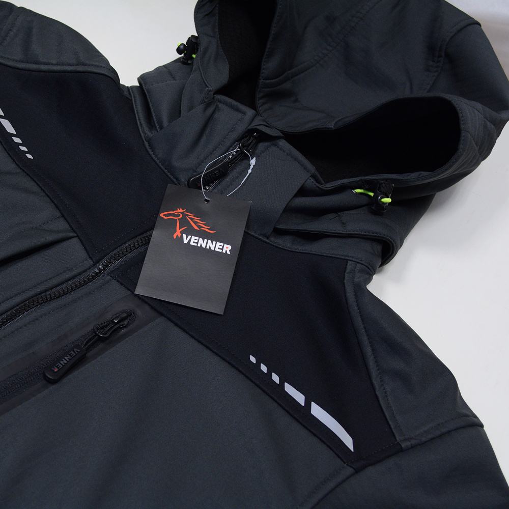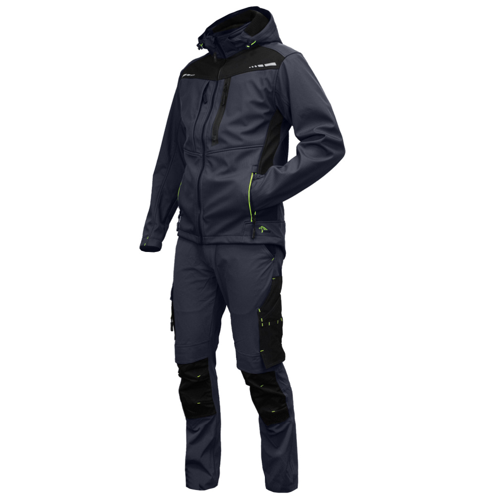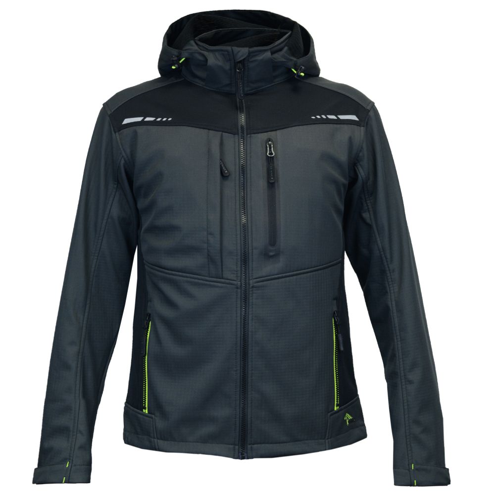 Ūdensnecaurlaidīga softshell jaka AirFlex ar mūsdienīgu dizainu un augstu valkāšanas komfortu. Laminētā flīsa odere nodrošina papildu izturību un siltumu. Jaka aprīkota ar noņemamu kapuci, regulējamām aprocēm un četrām rāvējslēdzēja kabatām – divām krūšu un divām sānu. Atstarojošās svītras plecu līmenī uzlabo redzamību tumšā laikā.