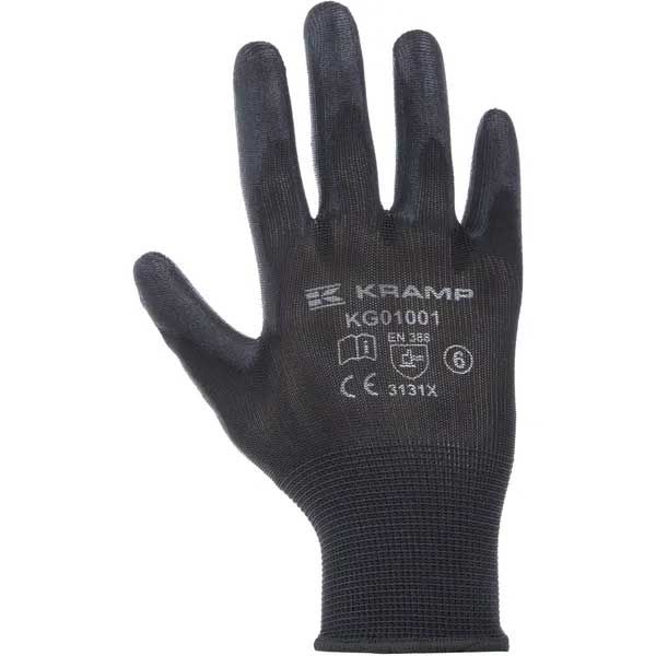 Darba cimdi KRAMP 1.001 ar PU pārklājumu, melni (iepakojums)