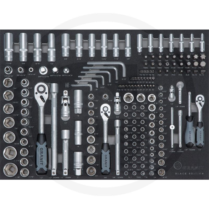 GRANIT BLACK EDITION 1/2", 3/8'' + 1/4" muciņ atslēgu modulis , 179 gab., imperial