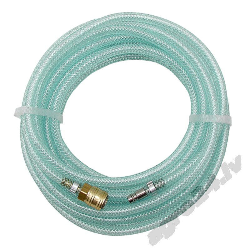 Izgatavots no augstas kvalitātes plastmasas, kura darba spiediens ir 10 bāri, ar noturīgu auduma ievietojumu. Sienas biezums: 3 mm. Ar kontaktdakšu un ātro savienotāju.