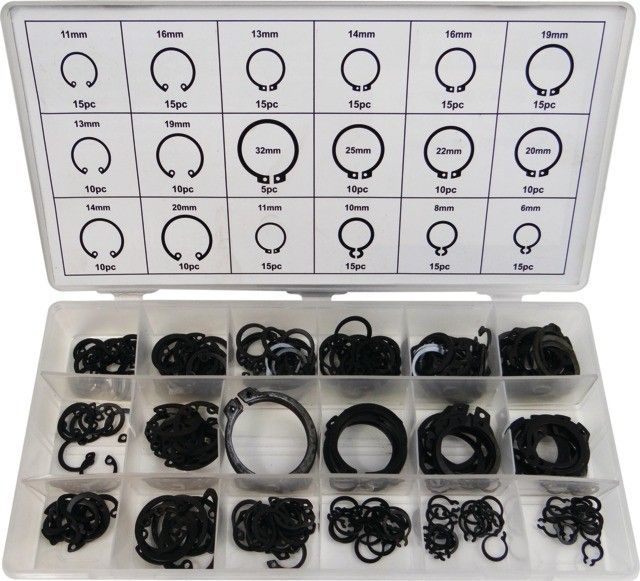 Iekšējo un ārējo sprostgredzenu komplekts, 225 gab. Ø 11 - 32mm