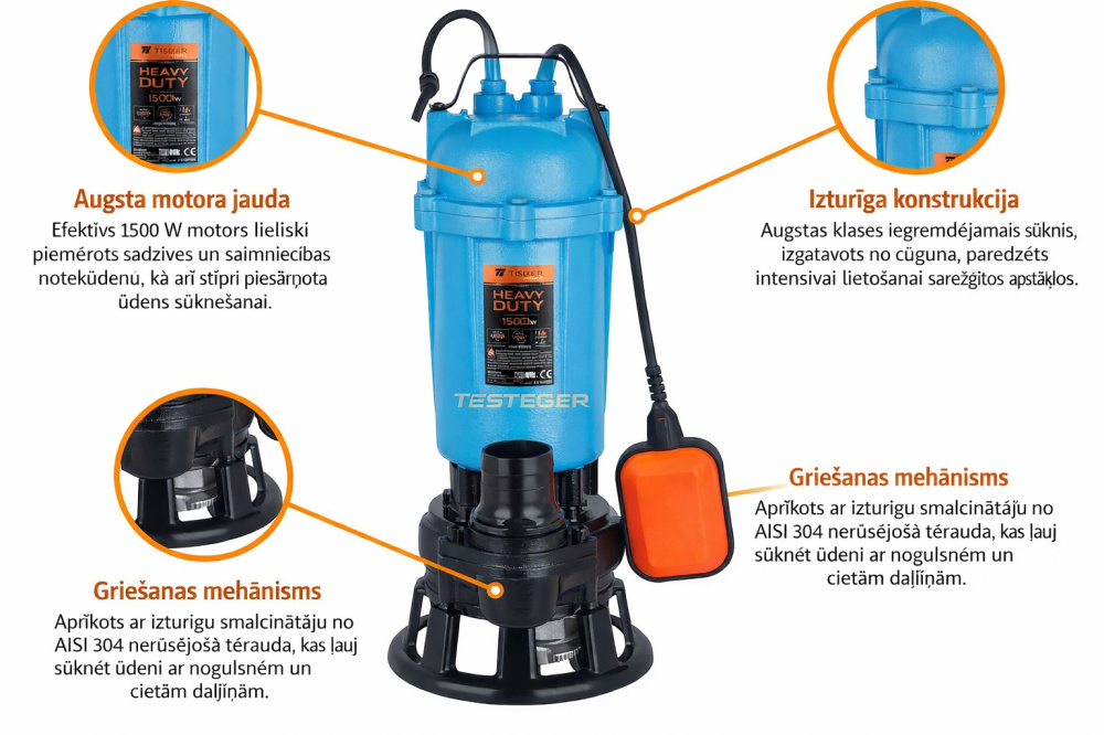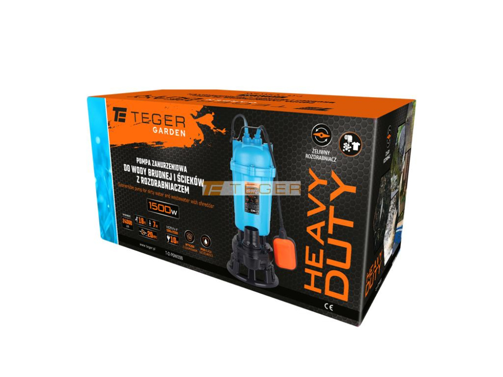 Iegremdējamais sūknis TEGER 1500W HEAVY DUTY, ar smalcinātāju