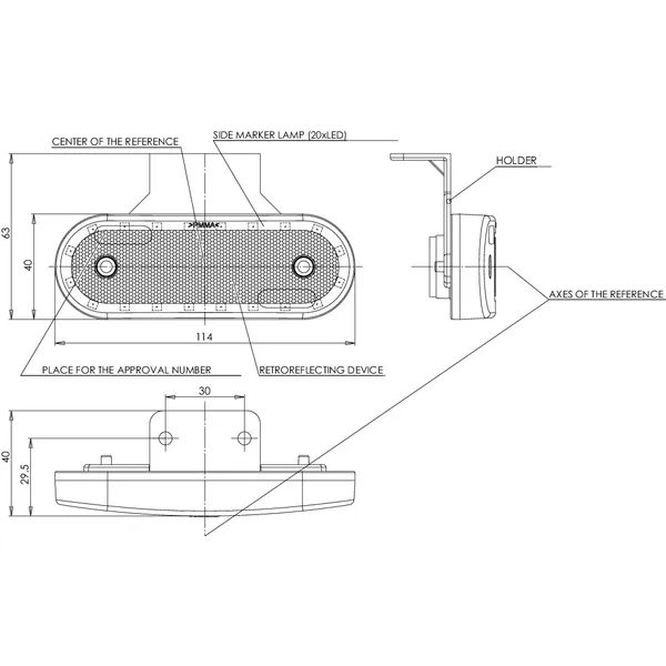 Universāls gabarītlukturis, kurš piemērots celtniecības transportlīdzekļiem, piekabēm un smagajām mašīnām.