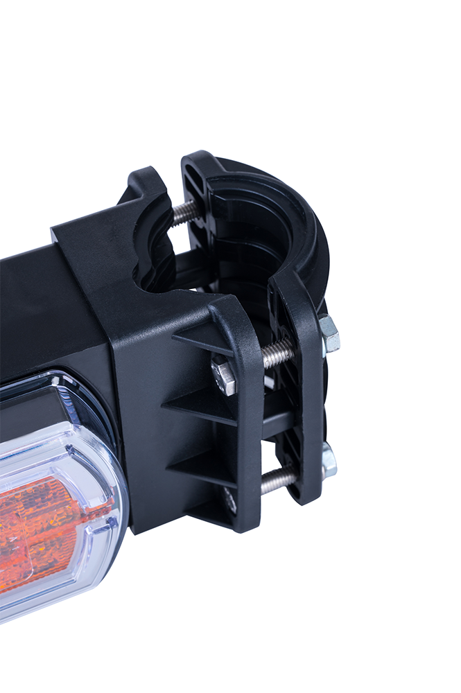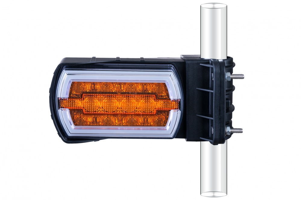 Priekšējais daudzfunkcionāls lukturis CLEOfront ar sānu virziena rādītāju, caurules stiprinājuma versija