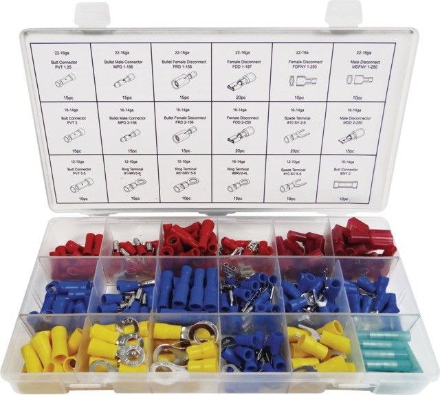 Komplektā ietilpst 260 gab. dažāda veida savienojumi.
