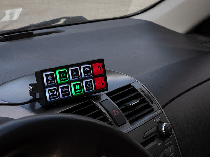 Optibeam vadības panelis ir paredzēts, lai paātrinātu un atvieglotu papildu ierīču uzstādīšanu un vadību dažādās 12 V darba vidēs ar kopējo jaudu līdz 60 ampēriem. Vairs nav nepieciešams uzstādīt atsevišķas ierīču drošinātājus, relejus vai automātiskos slēdžus, bet izmantotās funkcijas tiek pieslēgtas tieši 8 kanālu vadības blokam, no kura tās tiek vadītas ar savu 8 pogu vadības paneli.