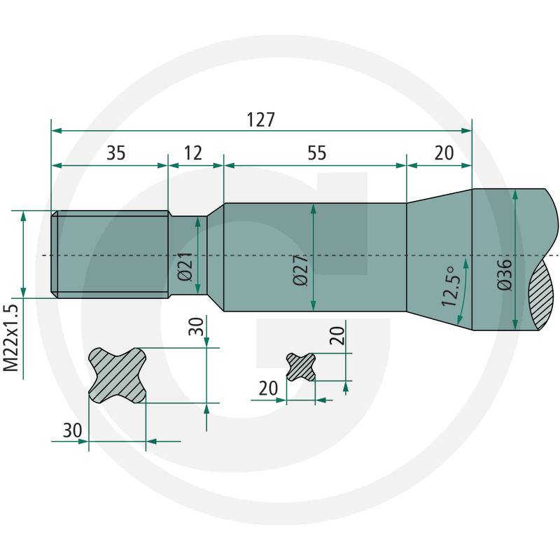 Pīķis, M22 x 1,5 mm, zvaigzne, konuss K107