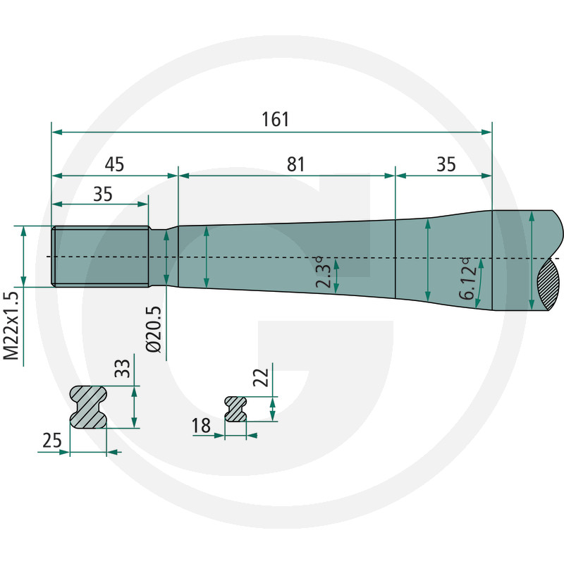Pīķis, M22 x 1,5 mm, kvadrātveida, konuss K010