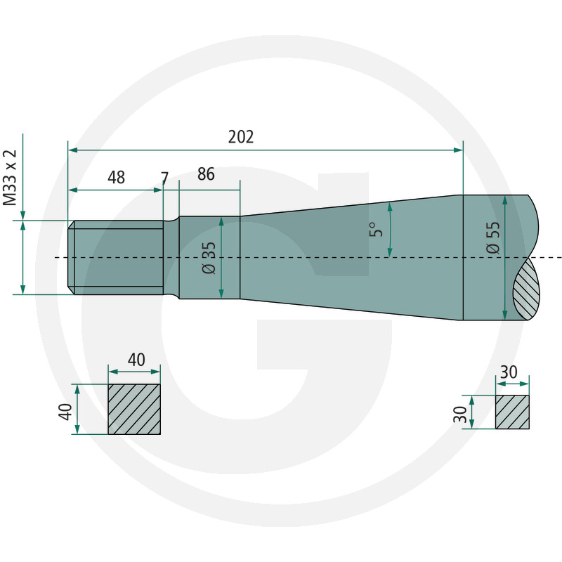 Pīķis, M33 x 2 mm, kvadrātveida, K018