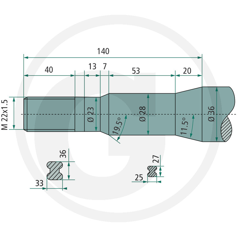 Pīķis, M22 x 1,5 mm, kvadrātveida, konuss K110