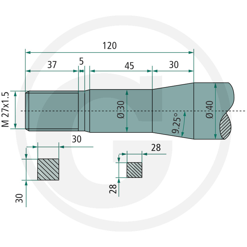 Izliekts pīķis M27 x 1,5 mm, kvadrātveida, konuss K112