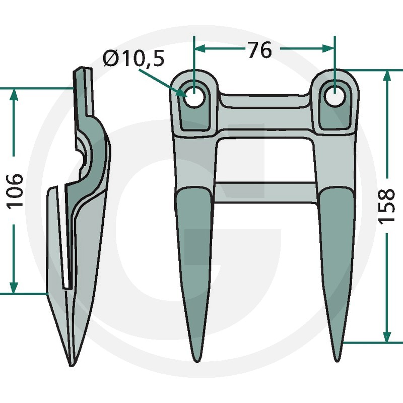 5'' dubultais pīķis ar centrālo joslu, zaļš