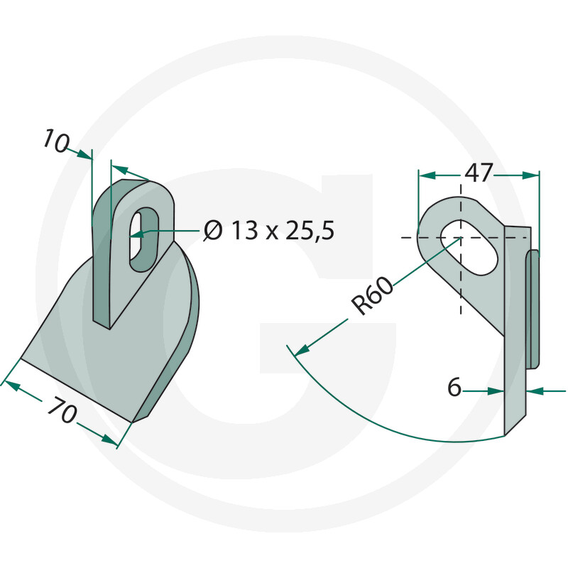 Mulčera āmurīts Ø 13 x 25,5, 70 mm, R=60