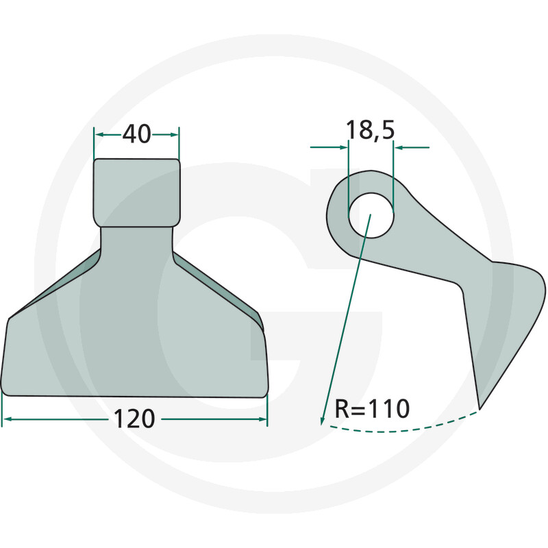 Mulčera āmurīts Ø 18.5, 120 mm, R=110
