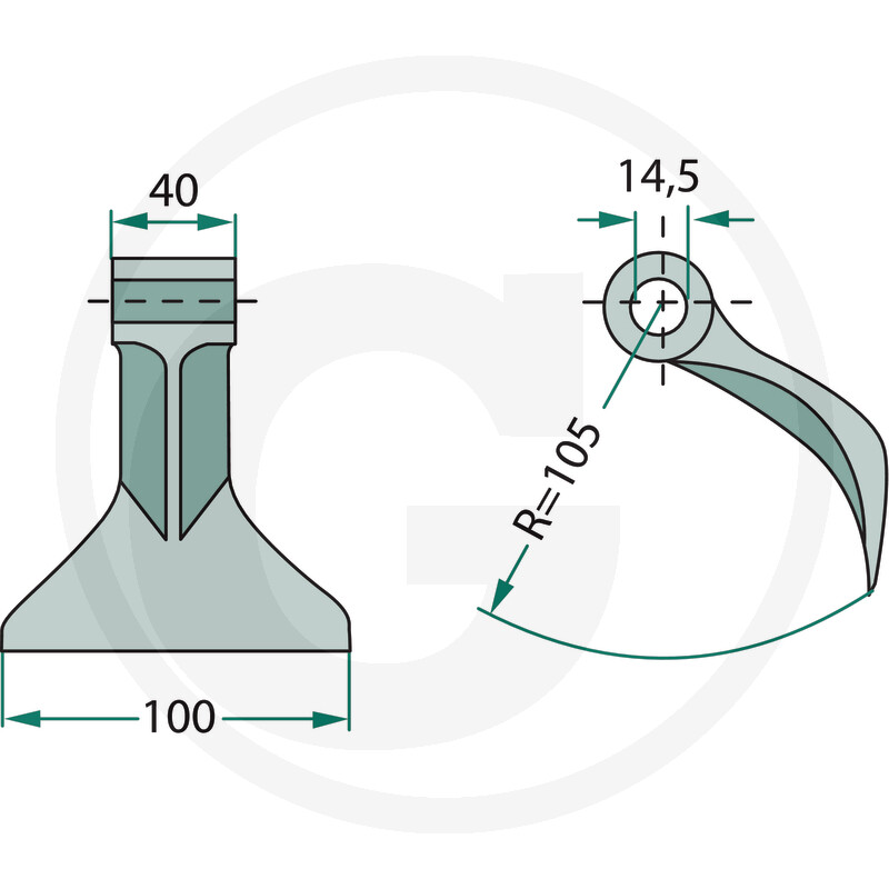 Mulčera āmurīts Ø 14.5, 100 mm, R=105