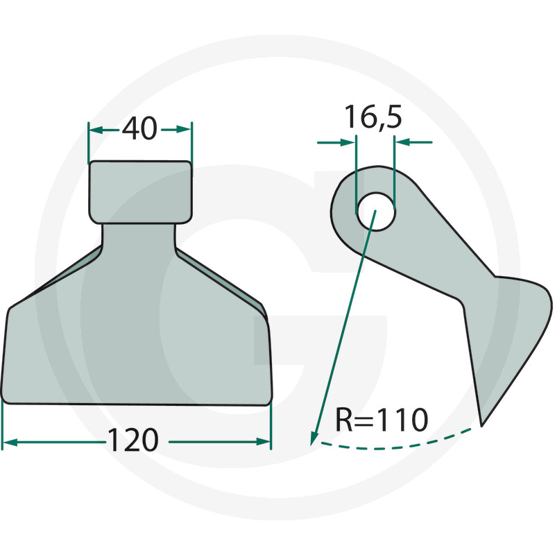Mulčera āmurīts Ø 16.5, 120 mm, R=110