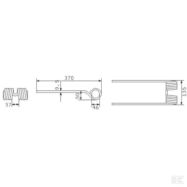 Rotējošā grābekļa zars, 370x135 Ø9,5 mm