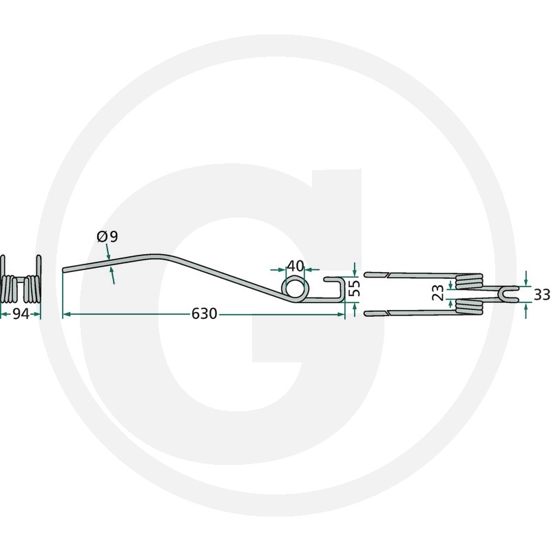 Rotējošā grābekļa zars, 630x94 Ø9 mm