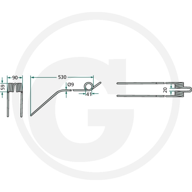 Rotējošā grābekļa zars, 530x90 Ø9 mm
