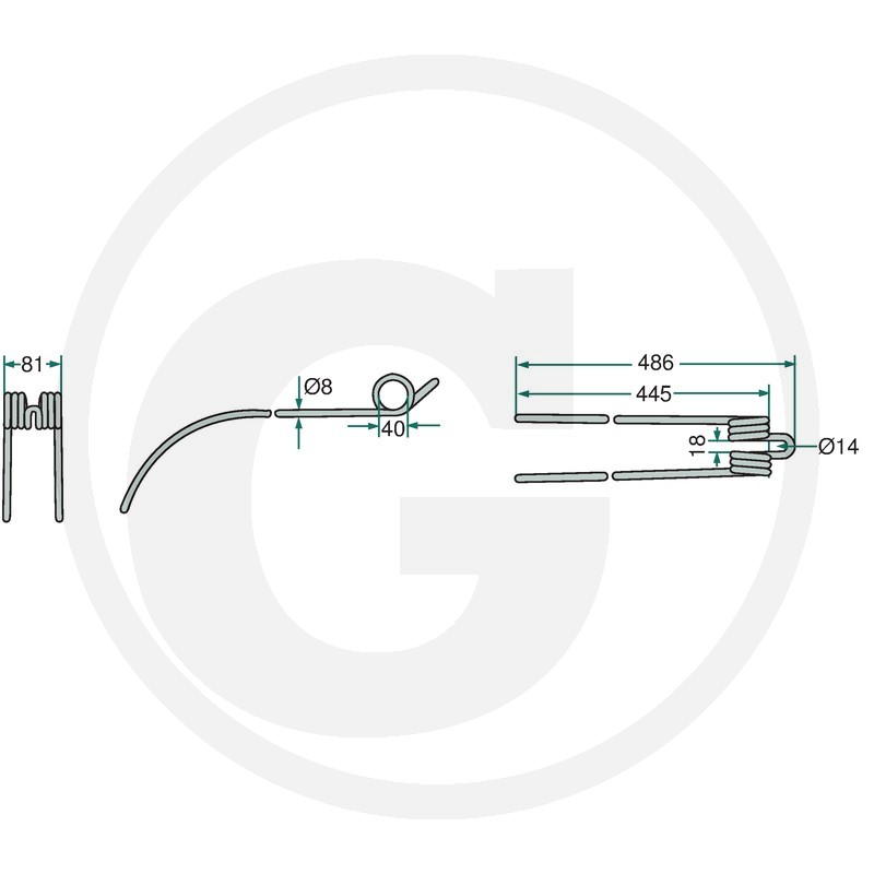 Rotējošā grābekļa zars, 486x81 Ø8 mm