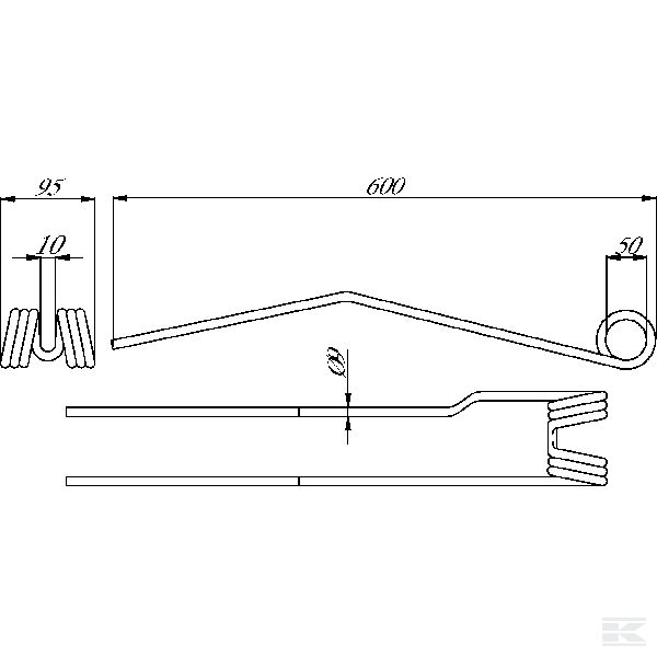 Rotējošā grābekļa zars,600x95 Ø9 mm