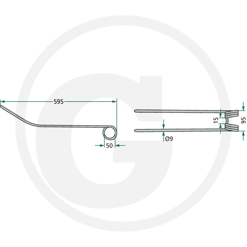 Rotējošā grābekļa zars,595x95 Ø9 mm