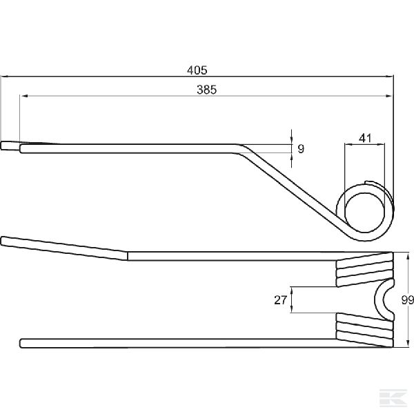 Rotējošā grābekļa zars, 405x99 Ø9 mm
