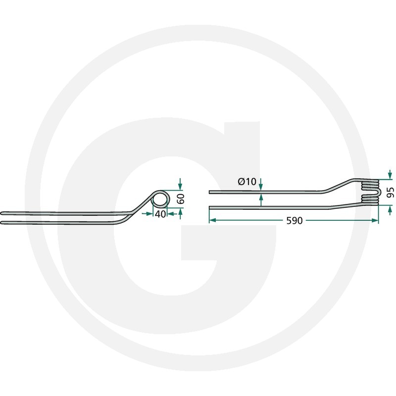 Rotējošā grābekļa zars, 590x95 Ø10 mm, kreisā puse iekšpuse