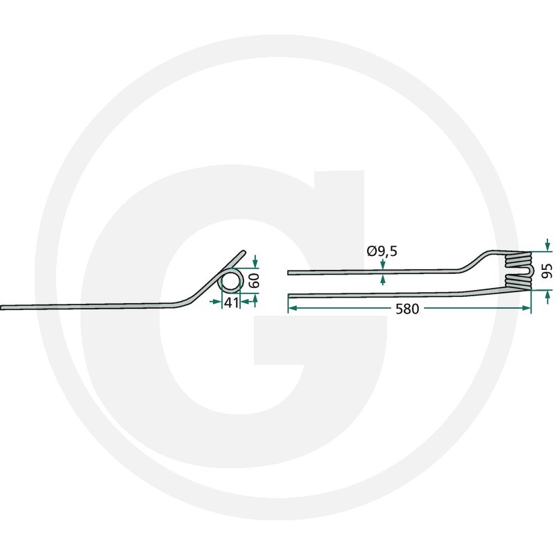 Rotējošā grābekļa zars, 580x95 Ø9,5 mm, ārpuse