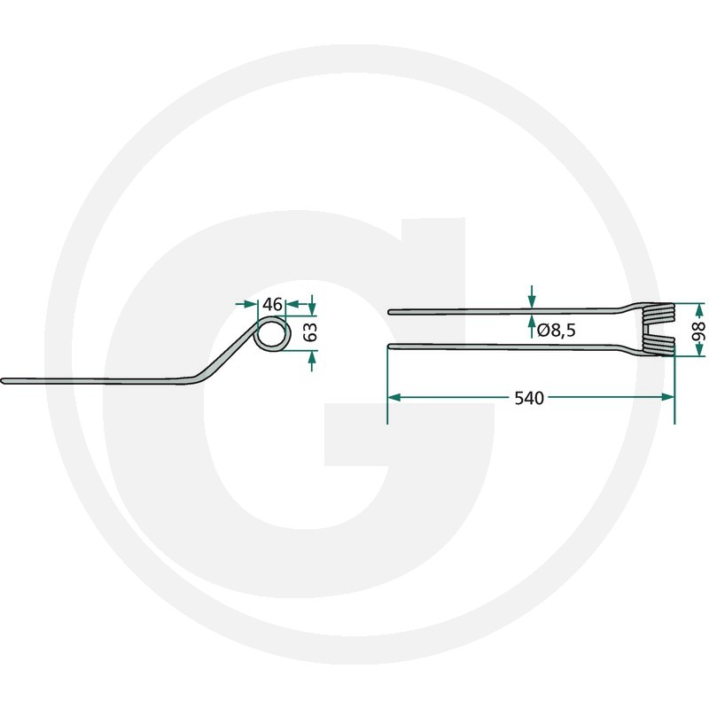 Rotējošā grābekļa zars, 540x98 Ø8,5 mm