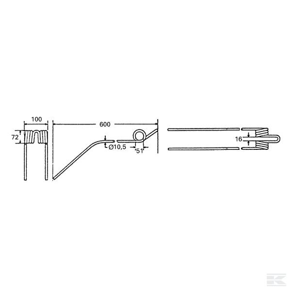 Rotējošā grābekļa zars, 600x100 Ø10,5 mm