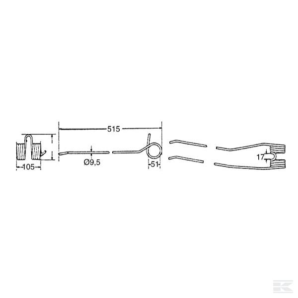 Rotējošā grābekļa zars, 515x105 Ø9,5 mm
