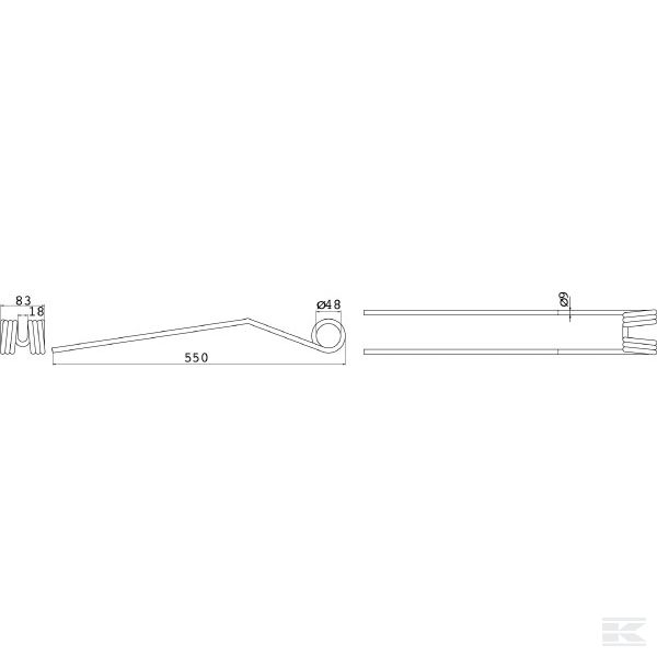 Rotējošā grābekļa zars, 550x83 Ø9 mm