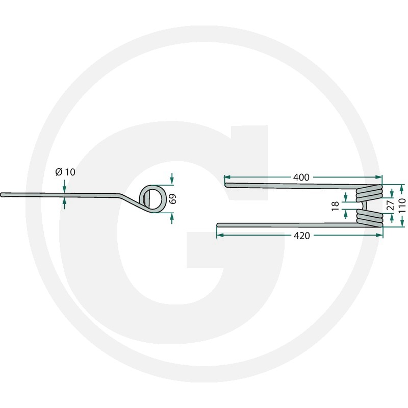 Rotējošā grābekļa zars 420x110 Ø10 mm, kreisā puse