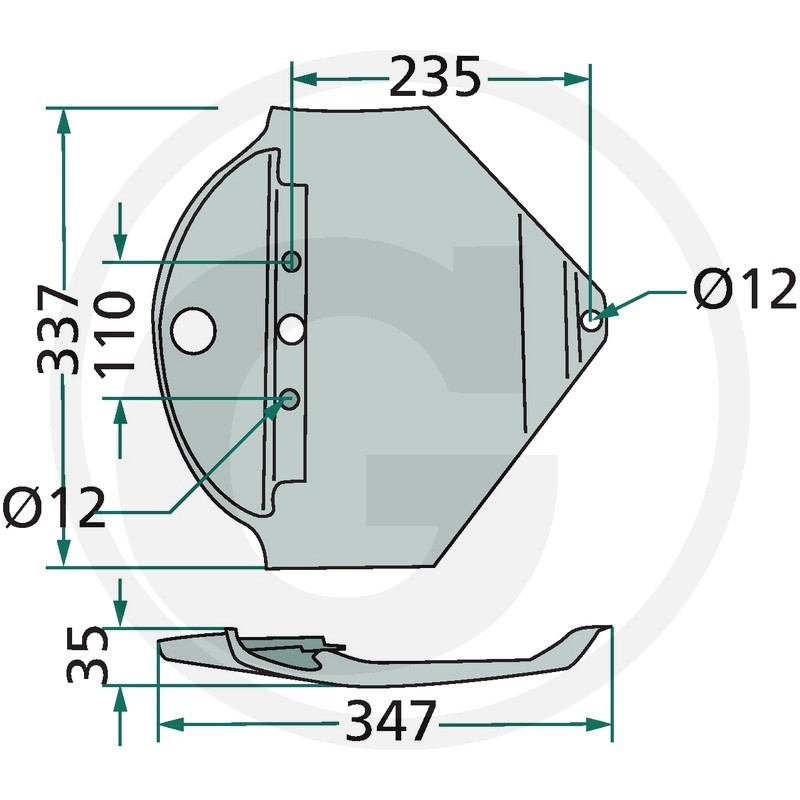 Pļaujmašīnas pēda, 347x337x35 mm