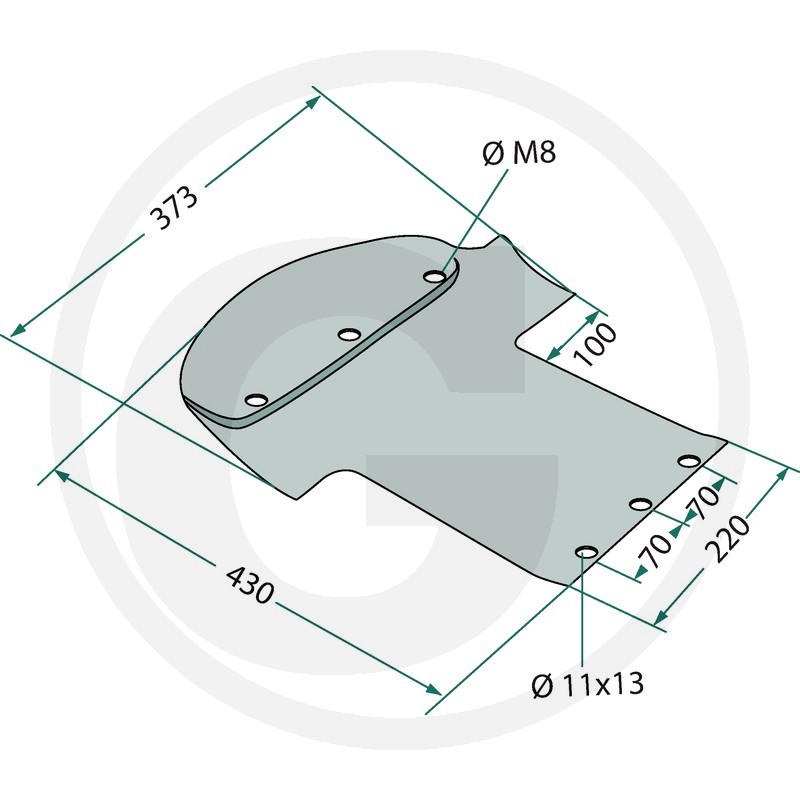 Pļaujmašīnas pēda, 420x380 mm, kreisā puse