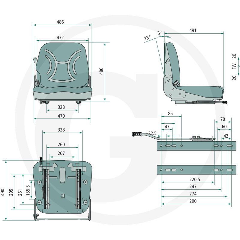 Ideāli piemērots iekrāvējiem, komunālajām iekārtām, traktoriem un celtniecības tehnikai, kur nepieciešama mehāniska piekare un regulējams komforts.