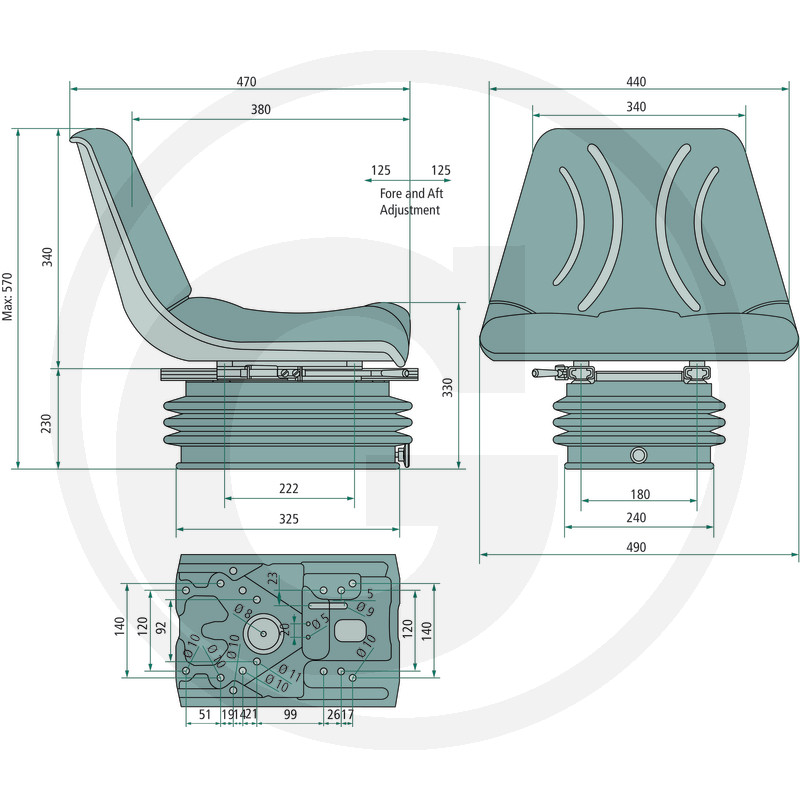 ● Sēdeklis ar balstiekārtu un balstiekārtas regulēšanu svaram no 50 kg līdz 130 kg