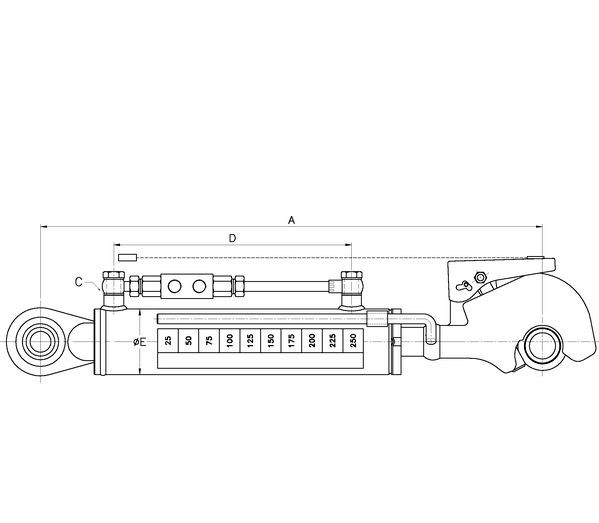 Hidrauliskā 3. punkta atsaite ar āķi, Cat. 2, 230 mm komplektā ar šļaukām