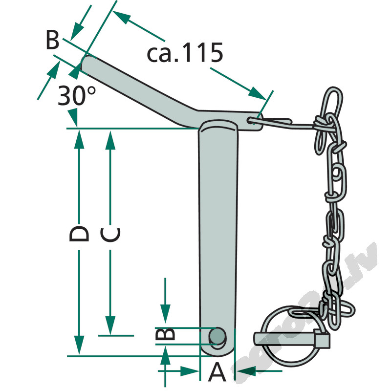 Centrālās atsaites tapa ar sprostu, Cat.1, D=191 mm